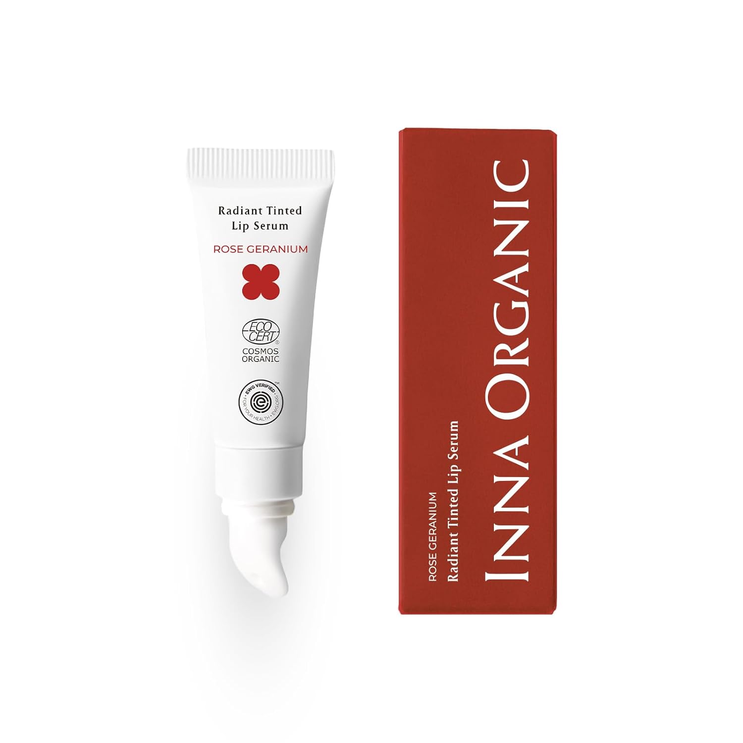 INNA ORGANIC Tinted Lip Serum, Moisturizing, Healing, Light Rosy color, 100% vegan, EWG & COSMOS Certified| Rose Geranium Essential Oils Infused Skincare | Luxury Clean Beauty
