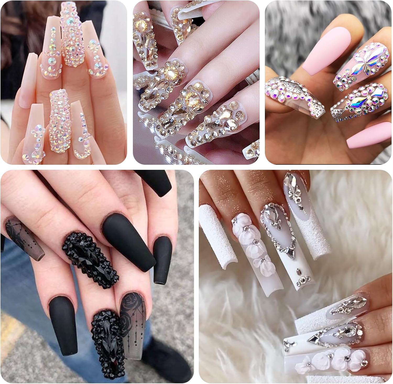 - šŗ High-Quality Nail Decorations Set: The special-shaped 3D diamond rhinestones are made of K9 glass, with advanced rhinestone cutting, shine under the illumunation of lights. The round flatback rhinestones are made of crystal glass too. These are very affordable so you do not have to be worried about breaking the bank to purchase a large amount of glass rhinestones for nail art.