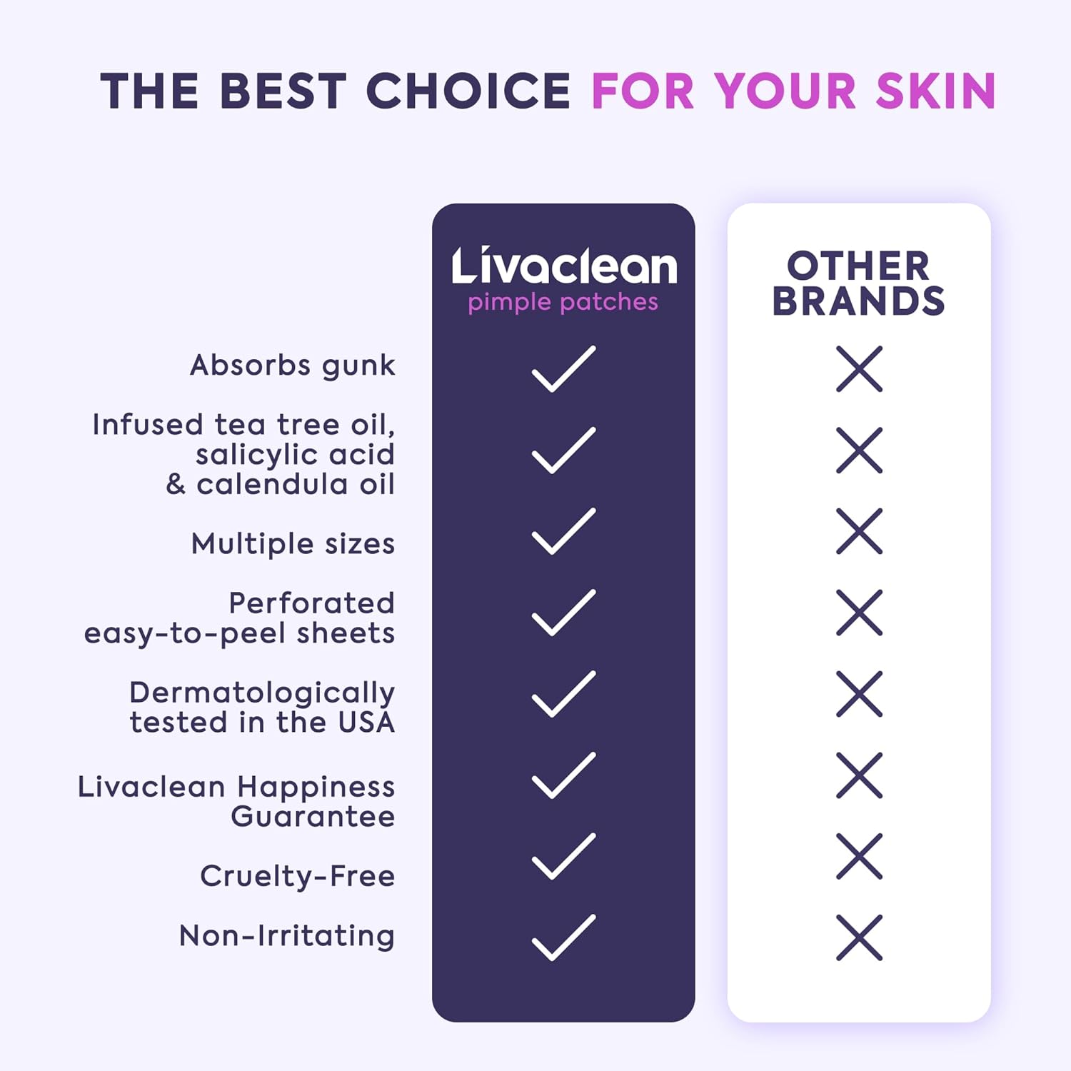 - šæ POWER-PACKED FORMULA - Our Livaclean hydrocolloid acne patches are infused w/Tea Tree Oil, Salicylic Acid, and Calendula Oil. This powerful trio halts blemishes and tackles dark spots aka hyperpigmentation, leaving your skin clear and radiant.