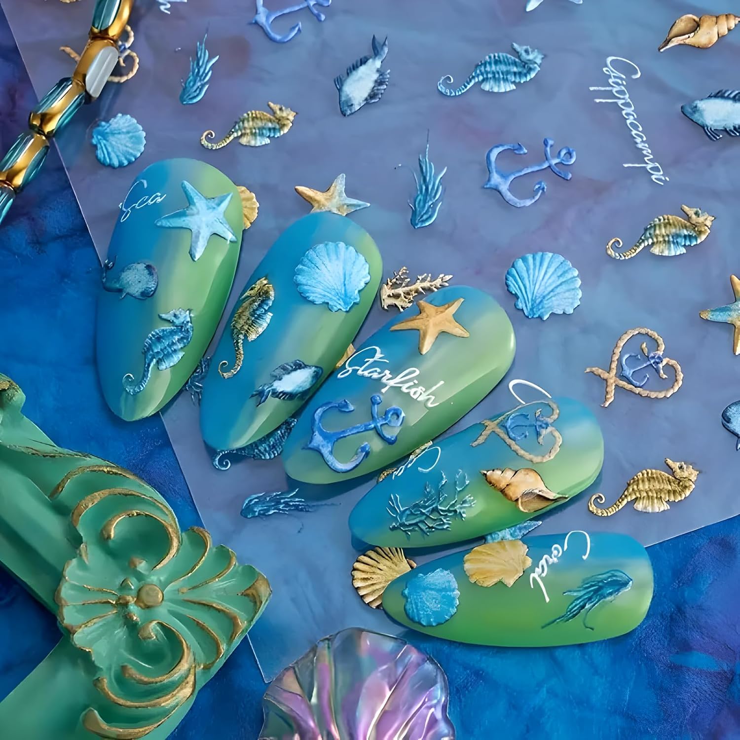 - Easy to Use:Marine life nail decals it is very easy to apply.Just choose a suitable pattern and apply it on the nails in the correct position, you can use a layer of nail polish to fix for long-term lasting.