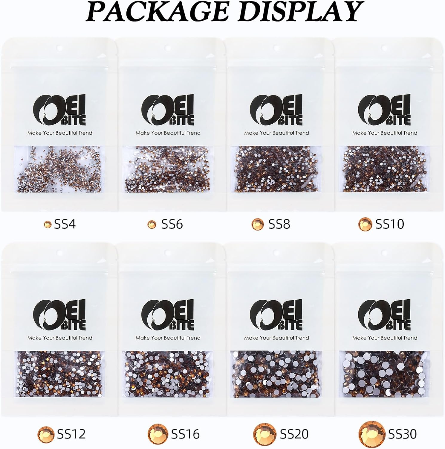- Product Packaging: Bags packaging SS8 2.3~2.5 MM - 1440 Pcs Topaz flatback rhinestones