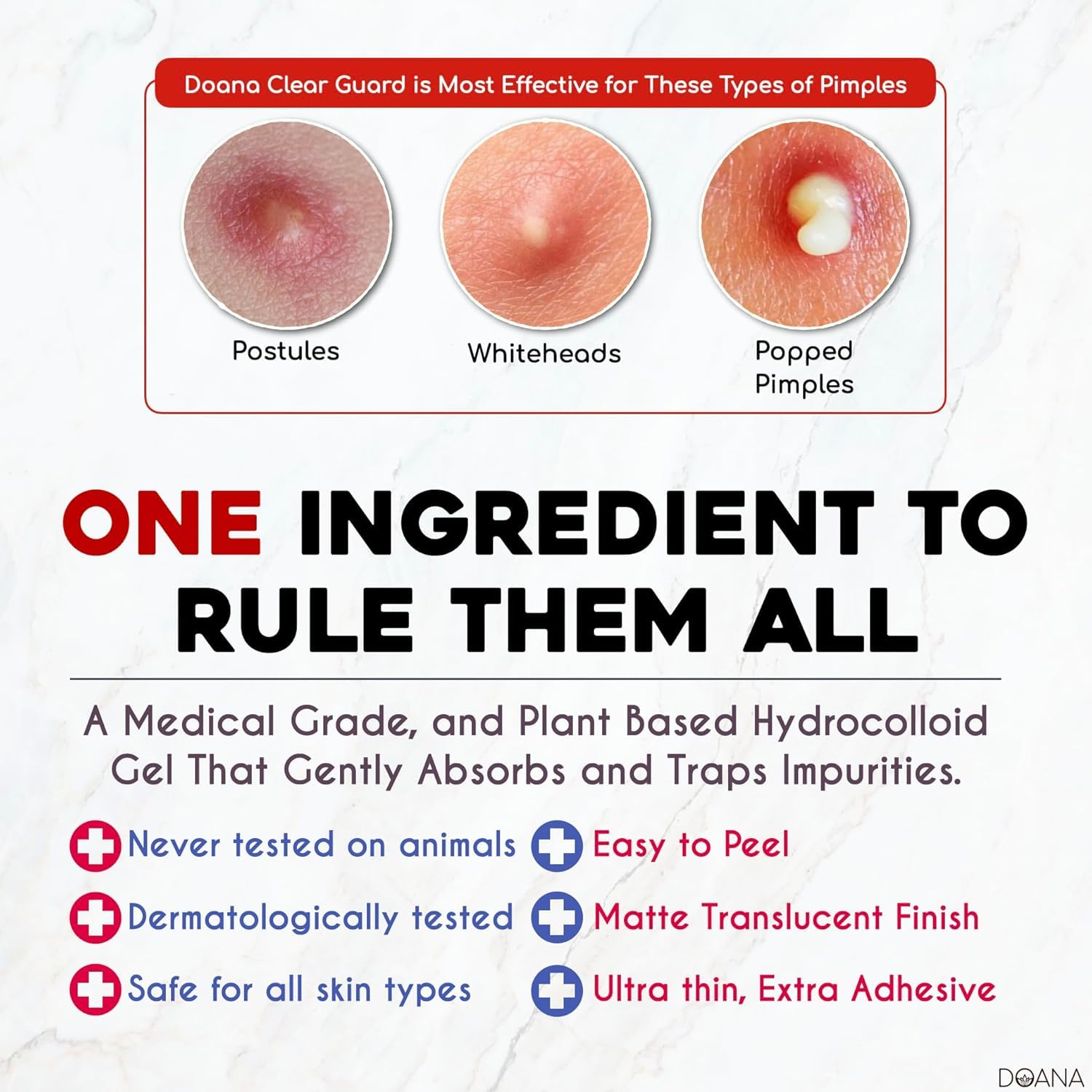 • Doana Clear Guard patch is a hydrocolloid sticker designed to enhance the appearance of pimples overnight, eliminating the need for popping. Simply apply it before bed, and wake up to clearer-looking skin.