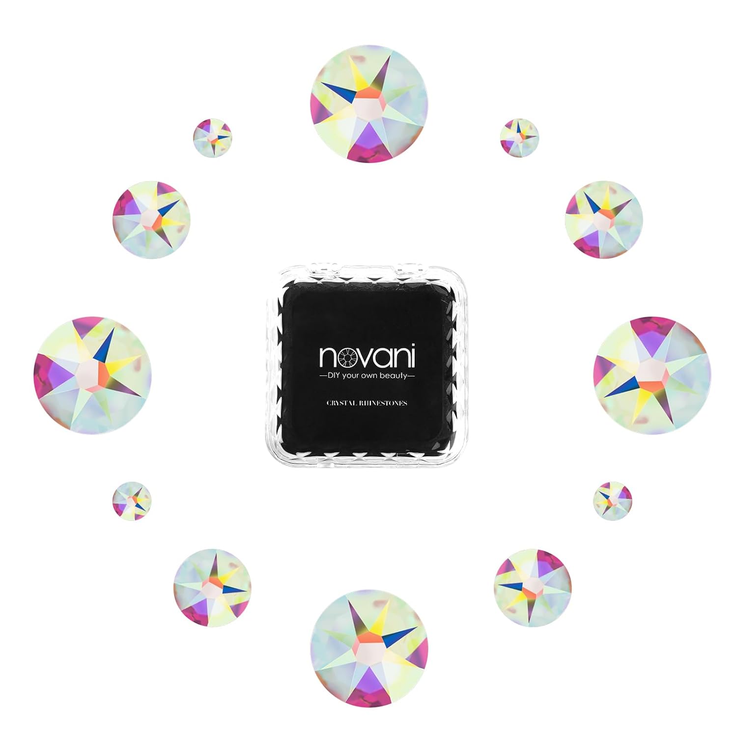 Novani Crystal AB Rhinestones Flat Back Round Rhinestone Style 2088 Sparkly Crystal Gemstones for Nail Art and Crafting,Mix Size(SS6-SS40)