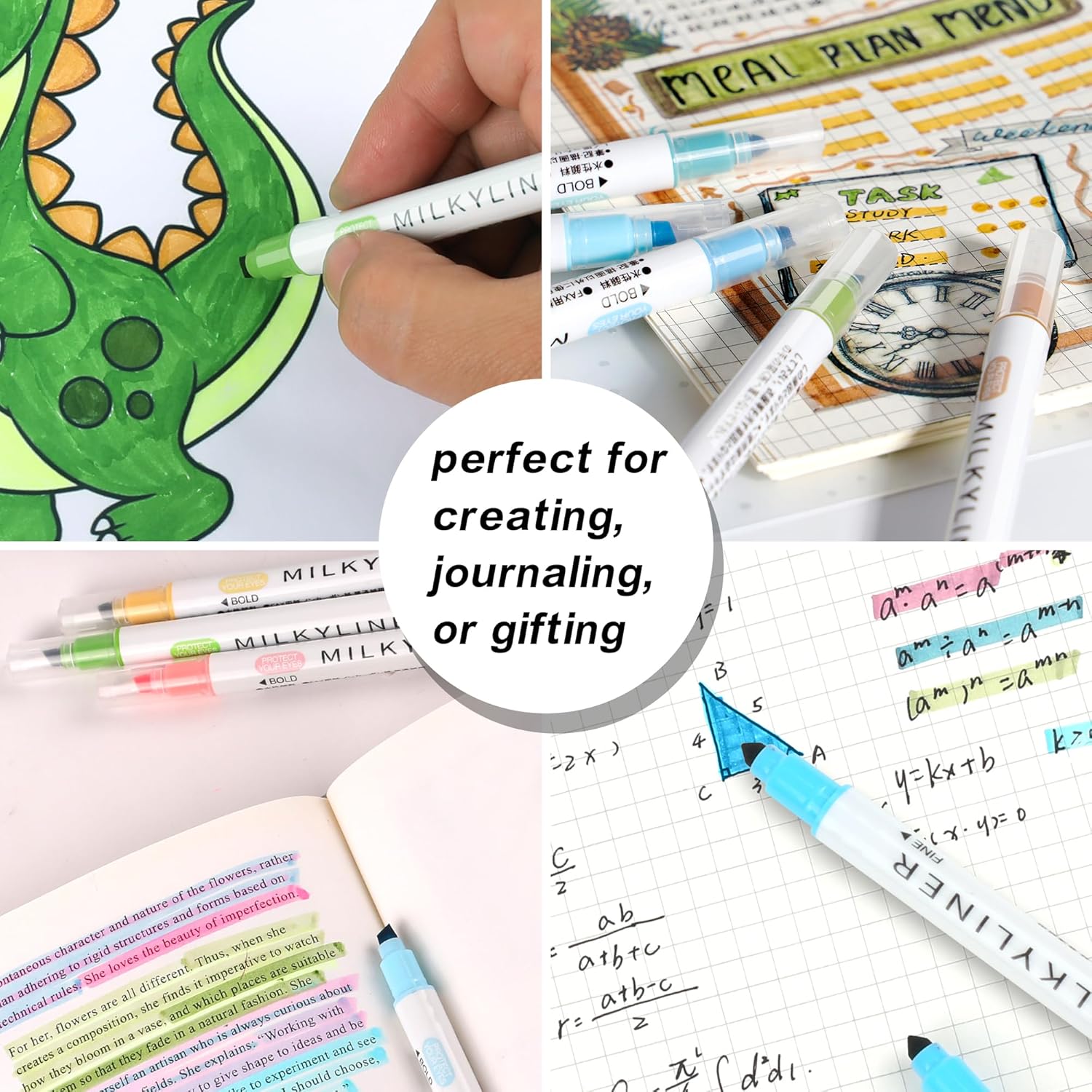 Pastel Highlighters, 12 Assorted Retro Colors, Dual Tip No Bleed Bible Highlighters, Quick Dry Highlighter Book Markers for Journaling, Bible Study, Adults Coloring, Office School Supplies