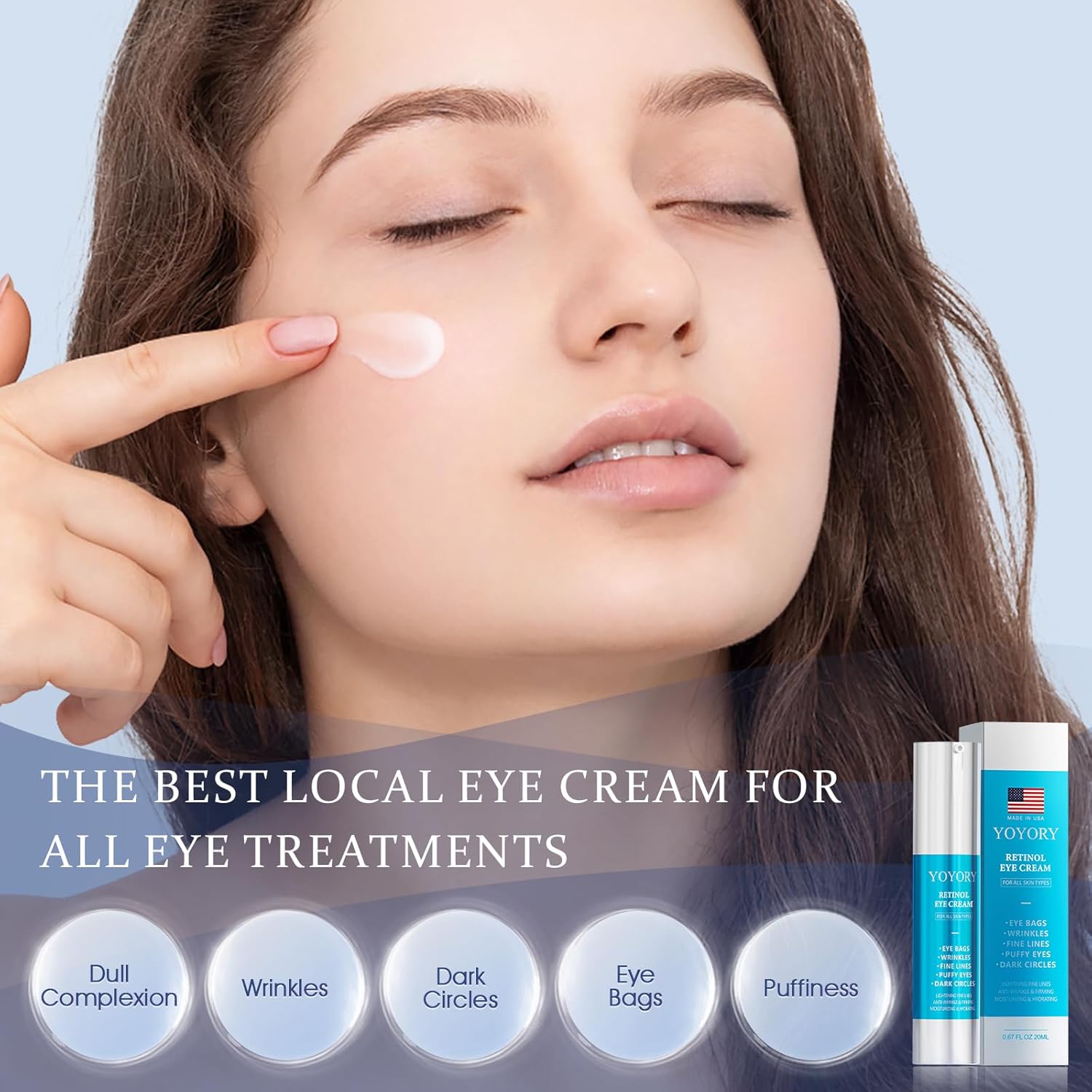 - LUXURIOUS RETINOL CARE: Indulge in the opulence of YOYORY Retinol Eye Cream for dark circles and puffiness, meticulously crafted to elevate the radiance around your eyes. Featuring star ingredients like retinol, this eye treatment creams not only provides intense hydration but also fights free radicals and smooths fine lines with a non-irritating formula, cocooning your skin in a soothing embrace.