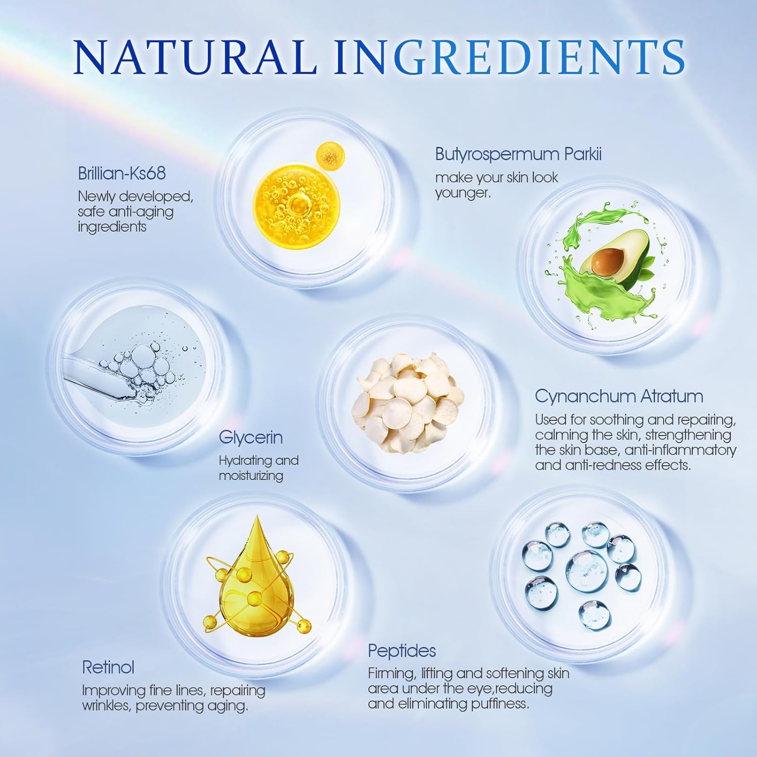 - ADVANCED SKINCARE INNOVATION: Embrace the future of skincare with YOYORY retinol eye cream for wrinkles. Boasting Brillian-Ks68, Butyrospermum Parkii, Peptides, and Cynanchum Atratum, our revolutionary formula goes beyond mere anti-aging. It minimizes potential irritations, soothes, repairs, calms, strengthens the skin base, and delivers anti-redness effects. Achieve an instant, intensive hydration effect for a visibly softer and smoother eye area.