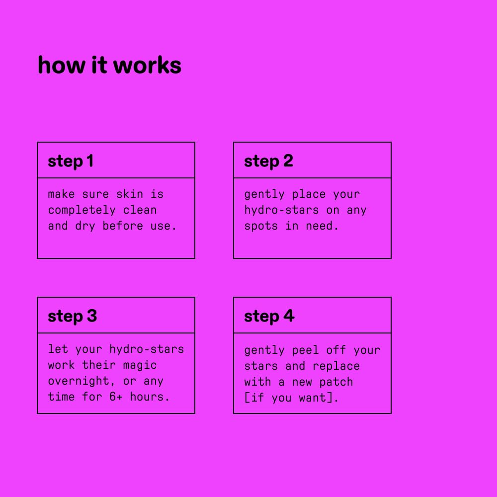 - FOR EVERYONE, ALWAYS: Hydro-Stars are vegan, cruelty free, dermatologist tested, gentle, and safe for every skin type (even sensitive).