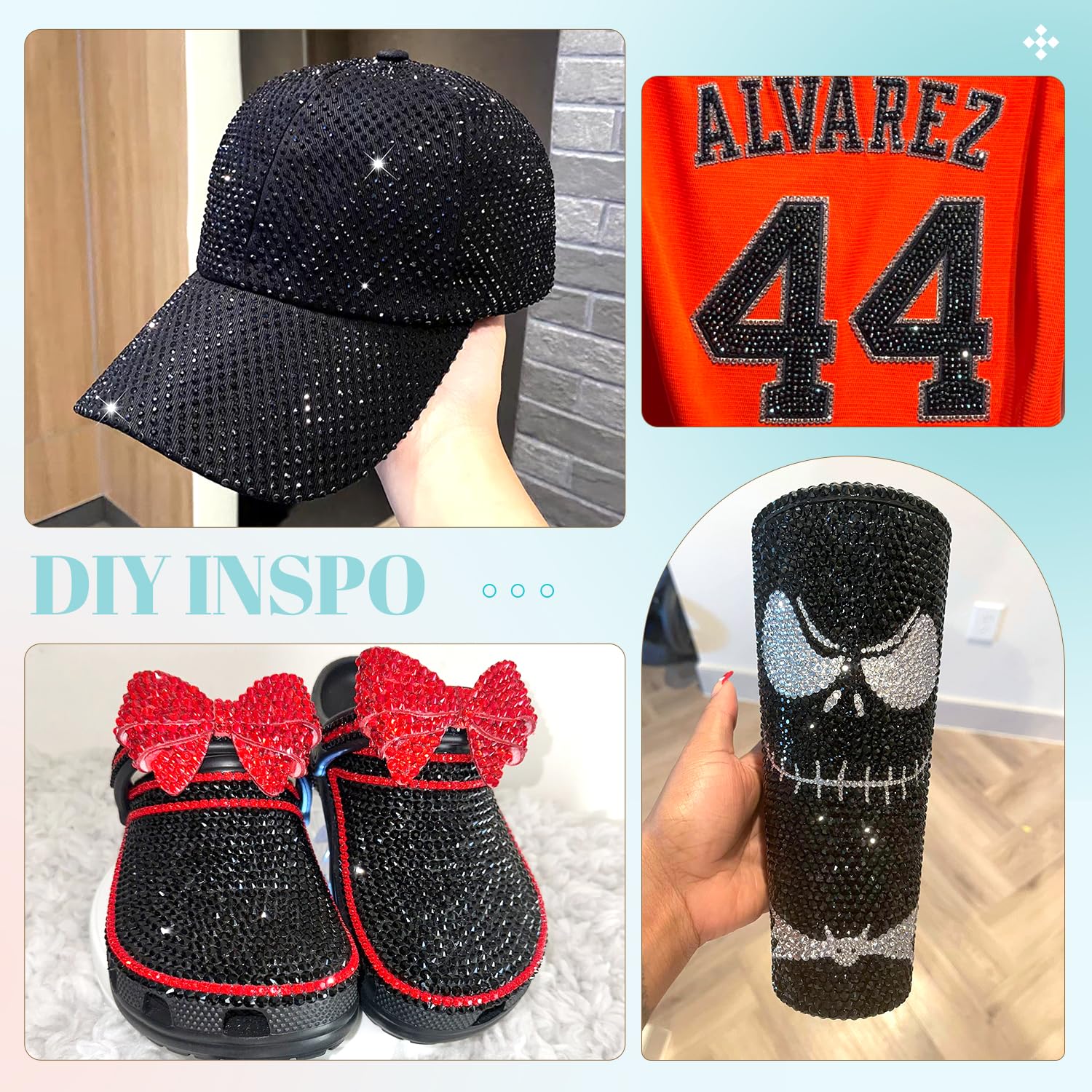 • 💎WIDE APPLICATION -- These sparkling iridescent resin crystals are perfect for creating dazzling looks. Use them for bedazzling DIY crafts like shoes, tumblers, mugs, bottles, phone cases, popsockets, scrapbooks, photo frames, diamond paintings, greeting cards, bags, glasses, guitars, keychains, hats, masks, hair clips, bracelets, wristbands, clothing, wedding dresses, and more. Apply it to what you want to bling!