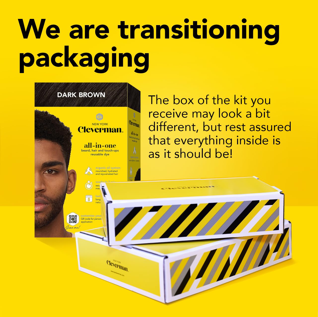Cleverman Hair & Beard Dye Kit for Men, All-in-One Reusable Mens Hair Color, Natural Gray Coverage, Ammonia-Free Beard Mustache Dye for Men (Dark Brown for Black Men)