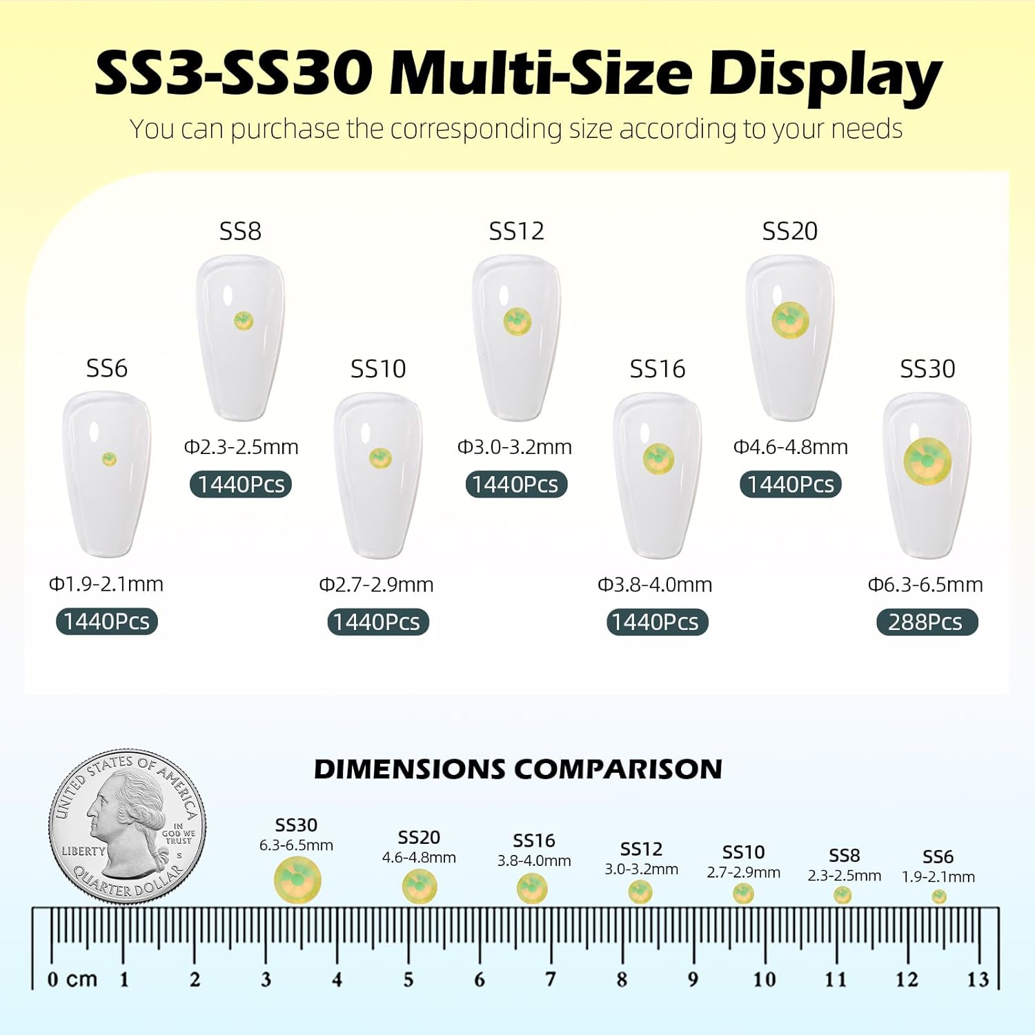 - Material: Glass/Artificial Crystal, Flat Back Round, High-precision cross-section, multi-sided cutting, high brightness, high Sparkly