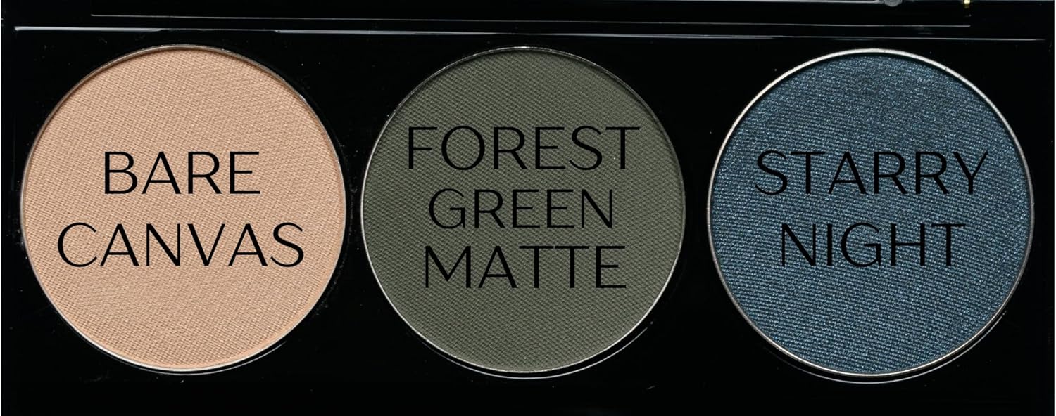 Off White, Matte Medium Green, and Glitter Navy Blue Green Vegan Eyeshadow Trio Palette; Talc, Paraben & Cruelty Free