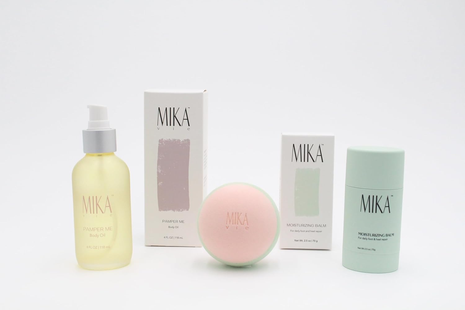 Body Oil Foot Balm Massage Ball | Beauty Kit with Organic Body Oil for Dry Skin Foot Balm for Dry Cracked Feet and Massage Ball | Clean Beauty, Vegan and Paraben Free