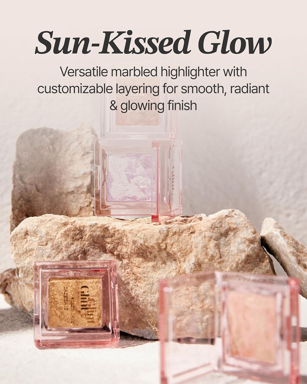 Glint Marble Highlighter (Icicle Moon, 0.08oz) - Korean Makeup. Inspired Baked for Smooth, Radiant Glow, Long-Lasting Wear. Enriched with Micro Pearl Particles