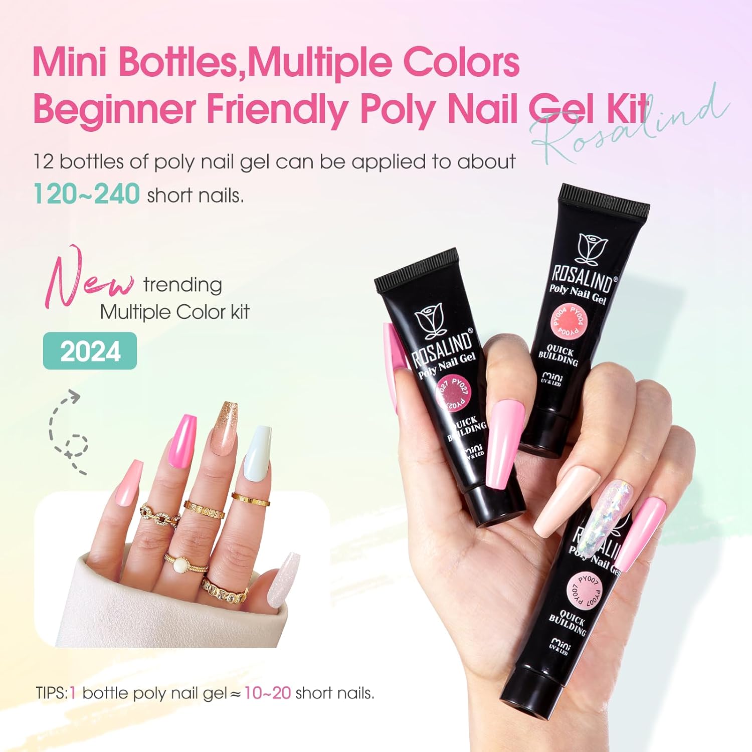 - Versatile Use: With 14 beautiful and trendy colors, it is suitable for nail art beginners and perfect for gift giving. ROSALIND poly nail extension gel kit is perfect for creating rhinestone nails, dry flower nails and glitter nails, as well as press-on nails on manicure. This poly extension gel is suitable for different shapes of nails such as square, oval, coffin and French nails.