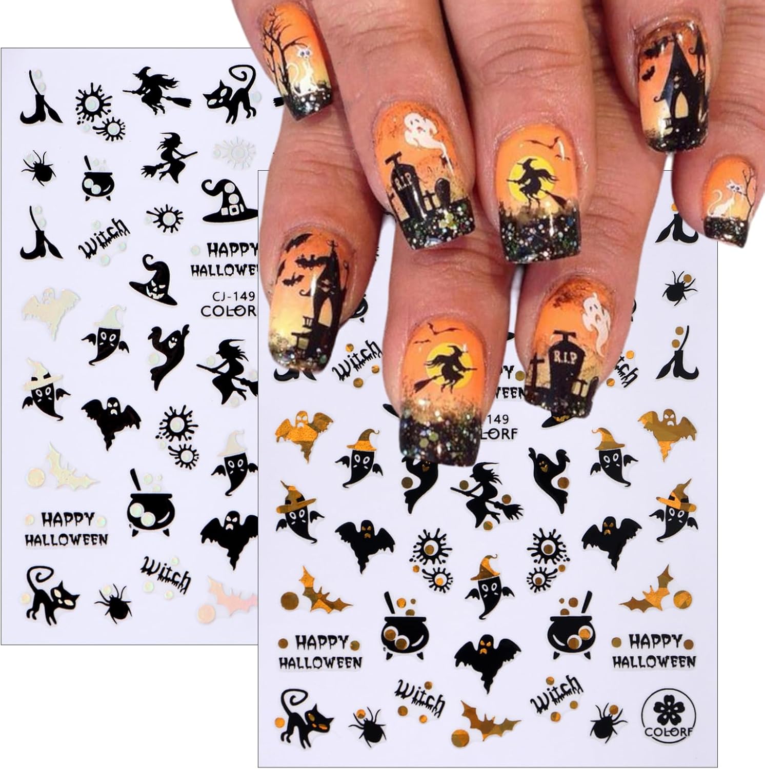 • Funny Pumpkin Self-Adhesive Design: 3D cute nail decals for nail art design is simple and quick to use, nail stickers work great on bare nails, they will stay on for a long time and will not peel off your nails, enjoy the feeling of nail art