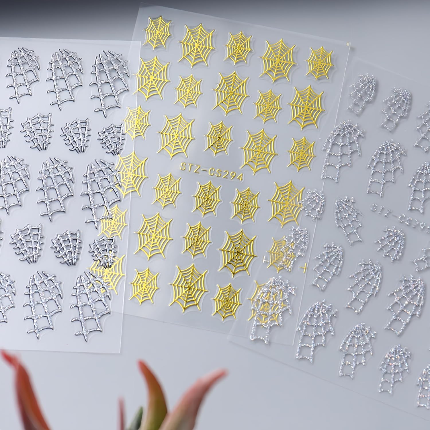 - Easy to Use: Gold spider web nail stickers decal are self-adhesive, completing fashion-cool nail art design in just a few seconds. If you want to keep it for a long time, you need to apply nail polish on the surface for reinforcement