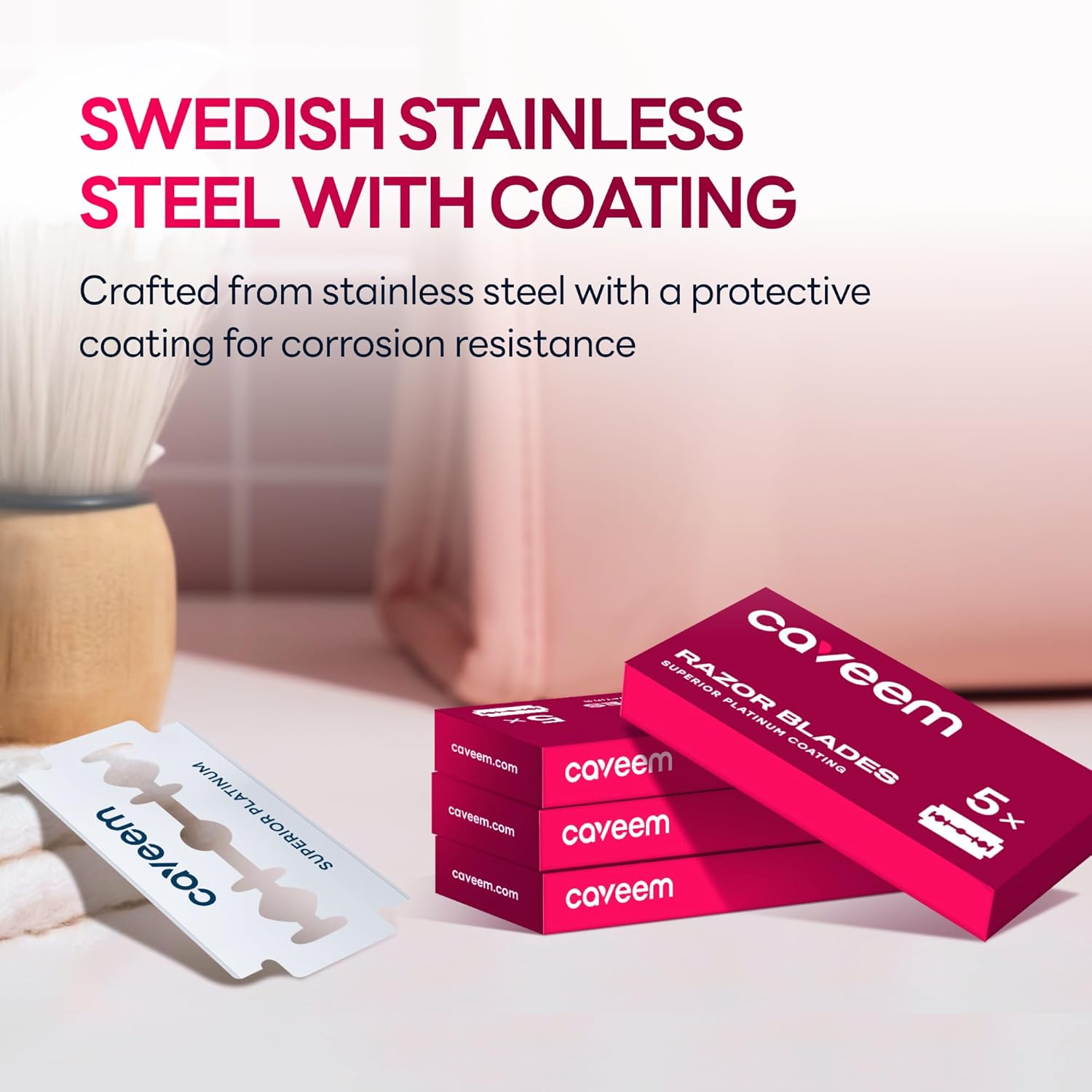 - ENDURABLE BLADES: Caveem's double-edge razor blades are crafted from stainless steel and feature rust-resistant coatings for durability and corrosion-resistant performances.