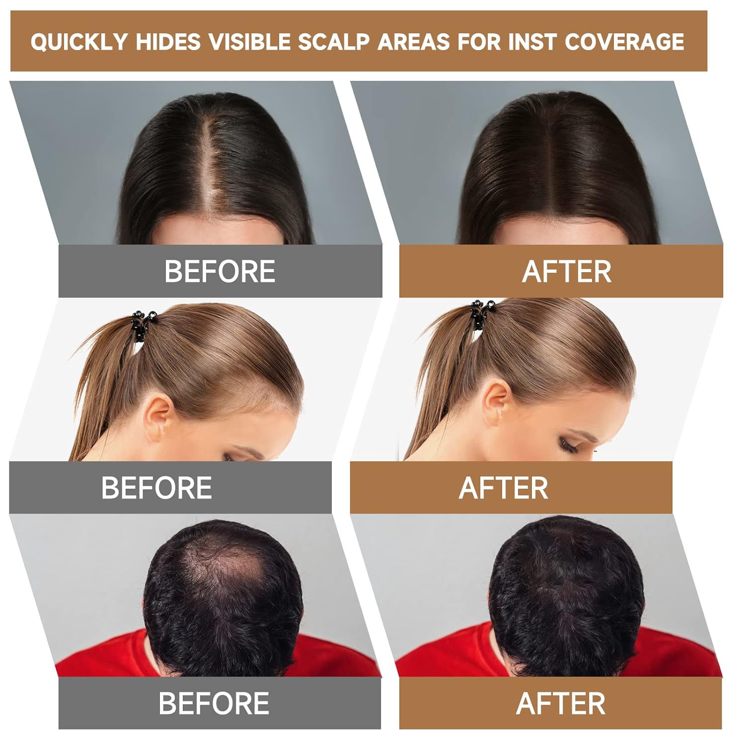 - Multi-Purpose Hairline Powder - Boost the thickness and fullness of your hair with our versatile hairline filler. It’s perfect for covering gray hair, touching up roots, beard line eyebrow, filling in thinning areas, covering bald spots, and enhancing highlights. Whether traveling, attending business meetings, or going on dates, you can quickly refresh your look and maintain beautiful, voluminous hair anywhere, anytime.