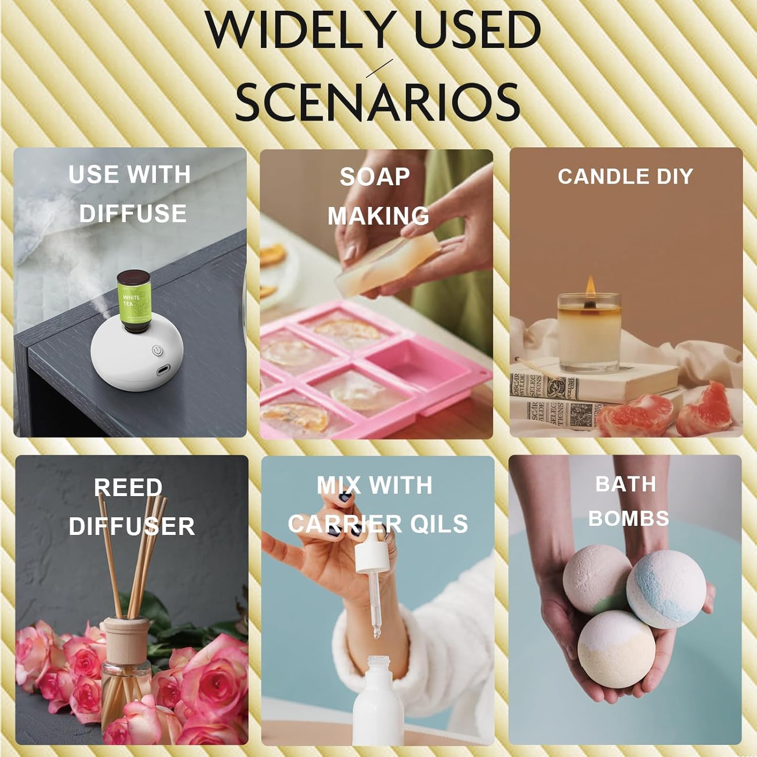 - Perfect for Home and Hotel Diffusers:Designed for versatility, these essential oils for diffusers for home work wonderfully in both hotel diffusers and various DIY projects such as candle making, soap making, or as air fresheners. Elevate your environment with these high-quality fragrance oils