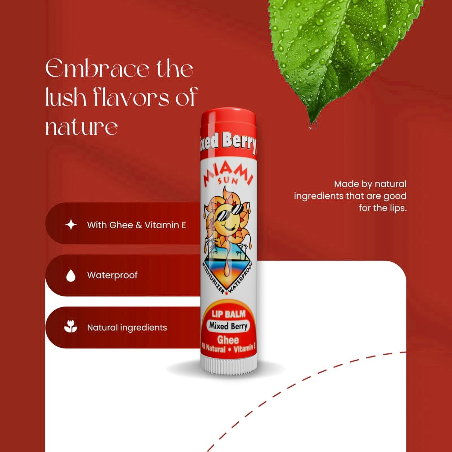 Miami Sun Natural Ghee Lip Balm, Hydrating Lip Treatment with Shea Butter & Beeswax, Organic & Non-Toxic, Best for Dry, Chapped Lips - Moisturizing, Healing, Chemical-Free Care (2 Pcs, Mixed Berry)