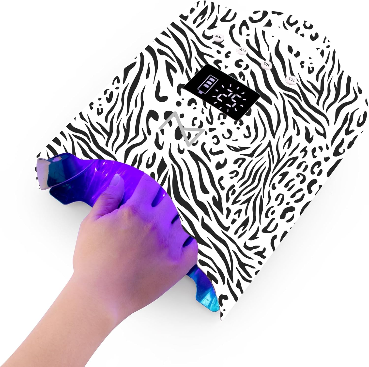 M - NEO Cordless & Rechargeable Nail Curing Lamp 78W with 4 LCD Time Display Timer, Auto Sensor, and Spacious Interior for All Hand Sizes and Nail Lengths (Zebra)