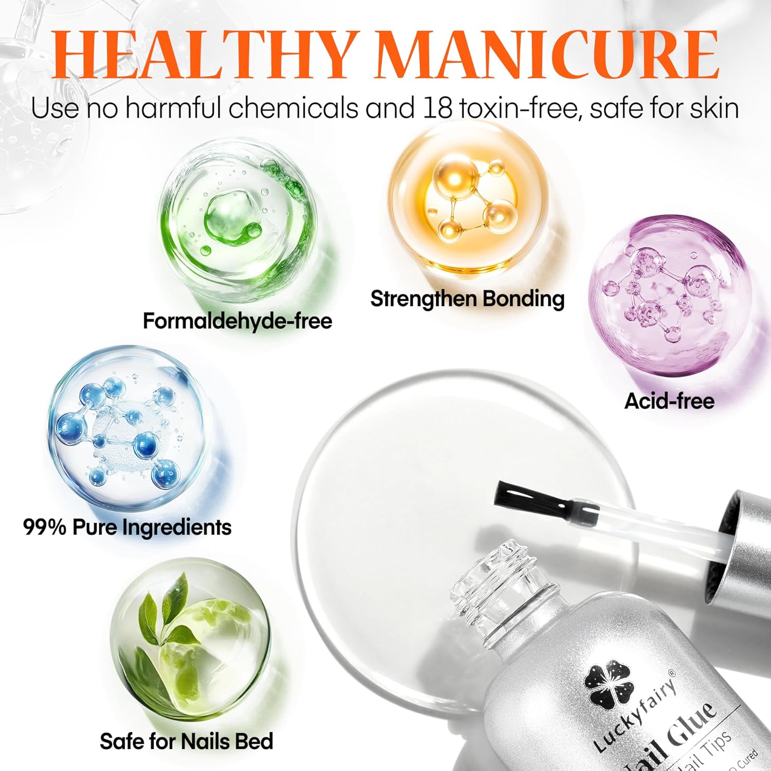 - NEW SAFE FORMULA: Compared to traditional nail glue, this new nail glue gel is made with a new formula, which makes it safe and has low odor, and no harm to your nails. All ingredients have been approved by certified professional organizations, providing you with a comfortable and pleasant nail experience.