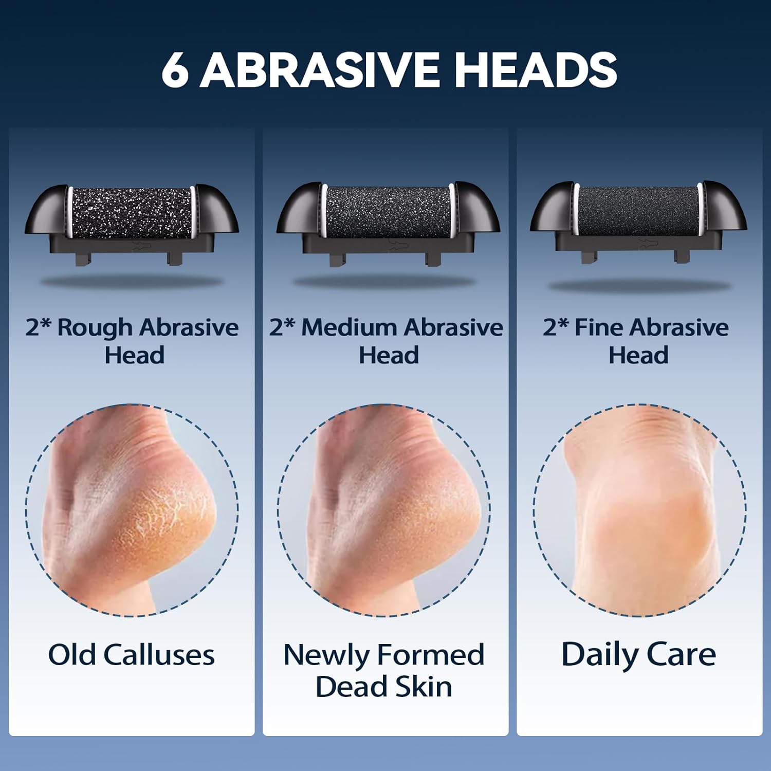 - Versatile Performance β With two power settings and six interchangeable grinding heads, you can easily customize the experience to meet your specific needs, ensuring soft, smooth feet with minimal effort.