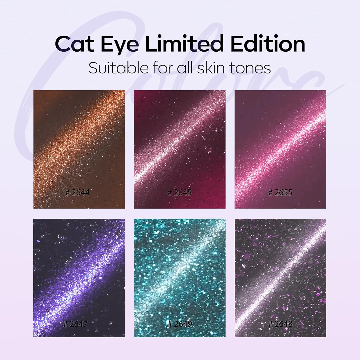 • What You Get: 6 Colors of Colorful Galaxy Holographic Glitter Cat Eye Gel Nail Polish (7ml/0.24 fl. oz each) + 1 Double-Head Magnetic Stick for various cat eye designs. Practice makes perfect in cat eye gel !