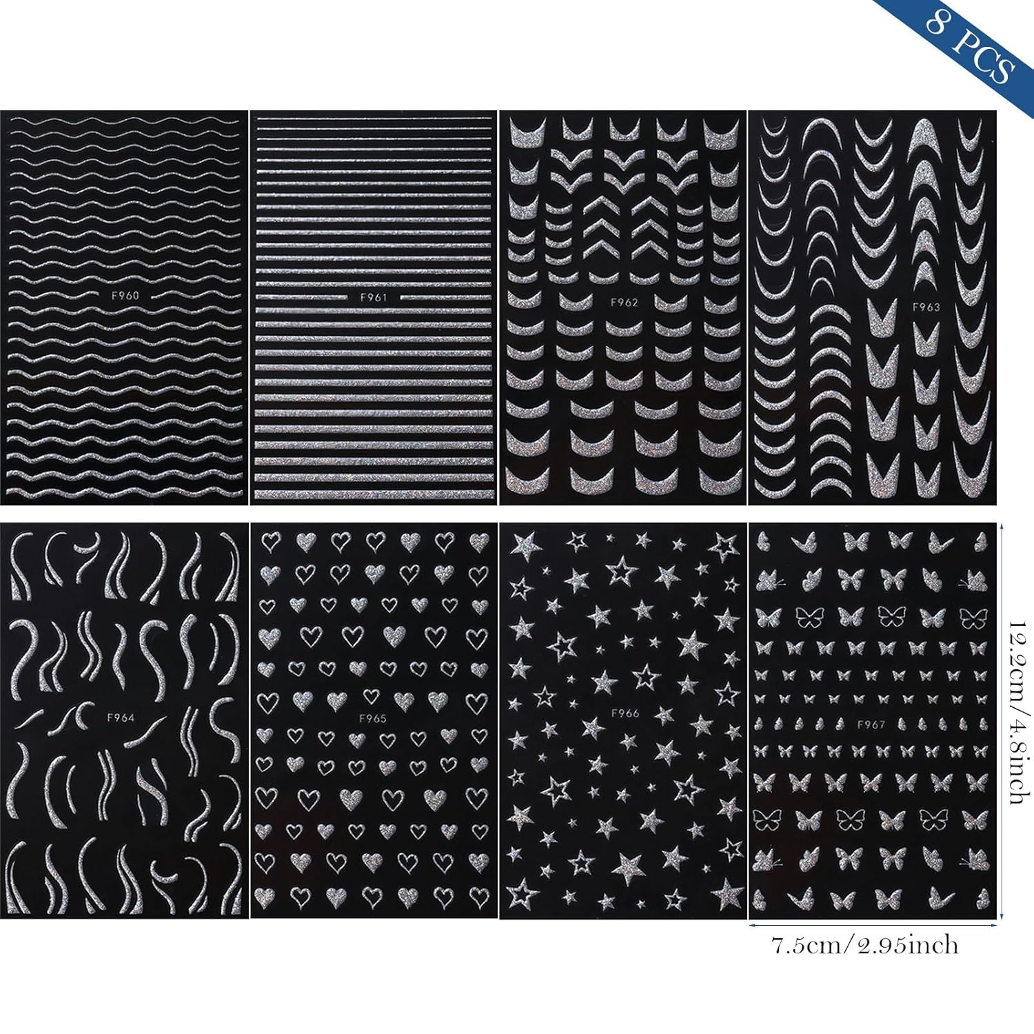 • Elegant Matte Holographic Finish: Silver matte stickers with a luxurious holographic effect provide a sophisticated and textured look, adding a standout, eye-catching detail to nails