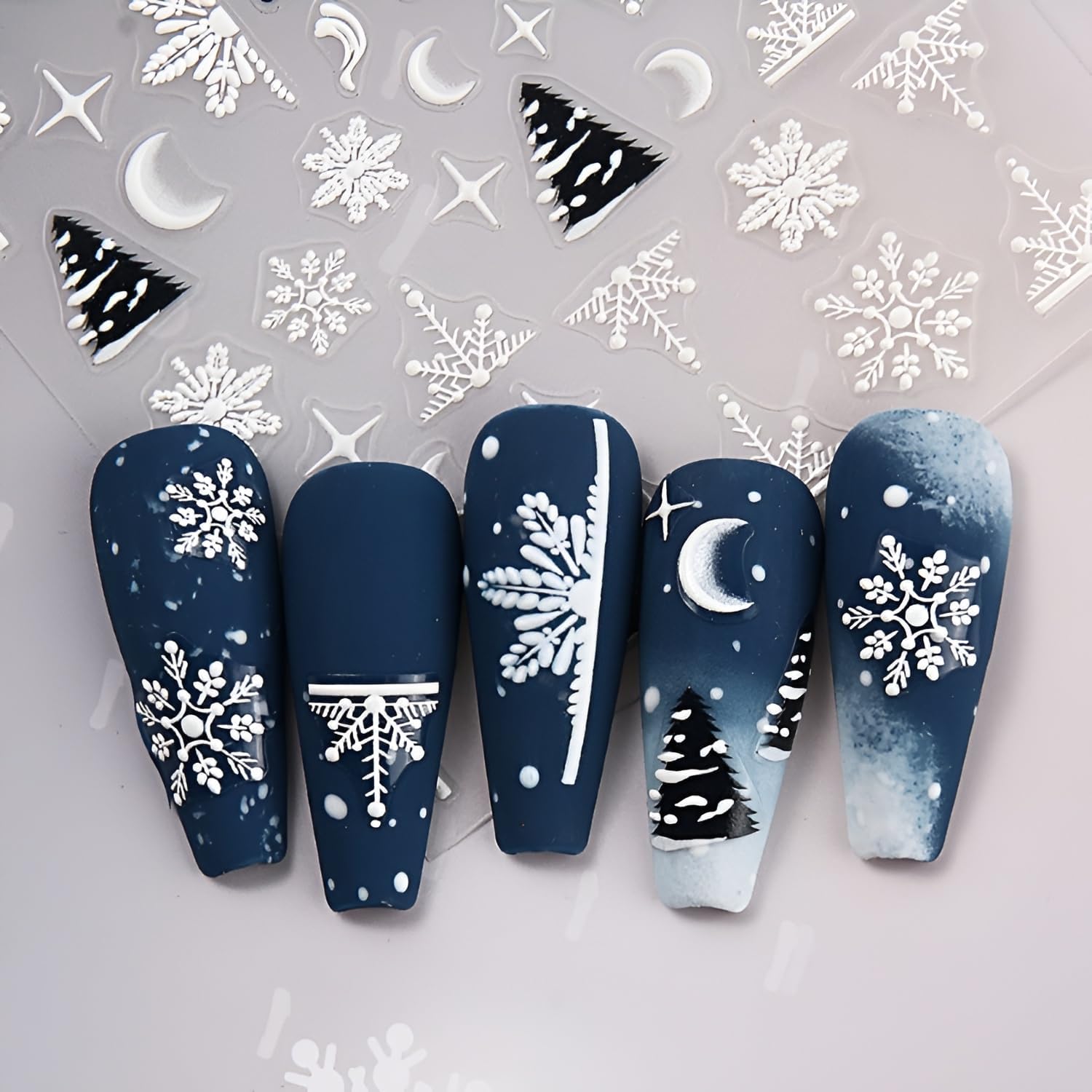 - ăChristmas Nail DesignăFeature 5D embossed self-adhesive Christmas nail decals for nail art with classic Christmas motifs such as Christmas trees, snowman, and snowflakes.These designs bring the holiday spirit to your nails, making them ideal for women and girls to celebrate the season.