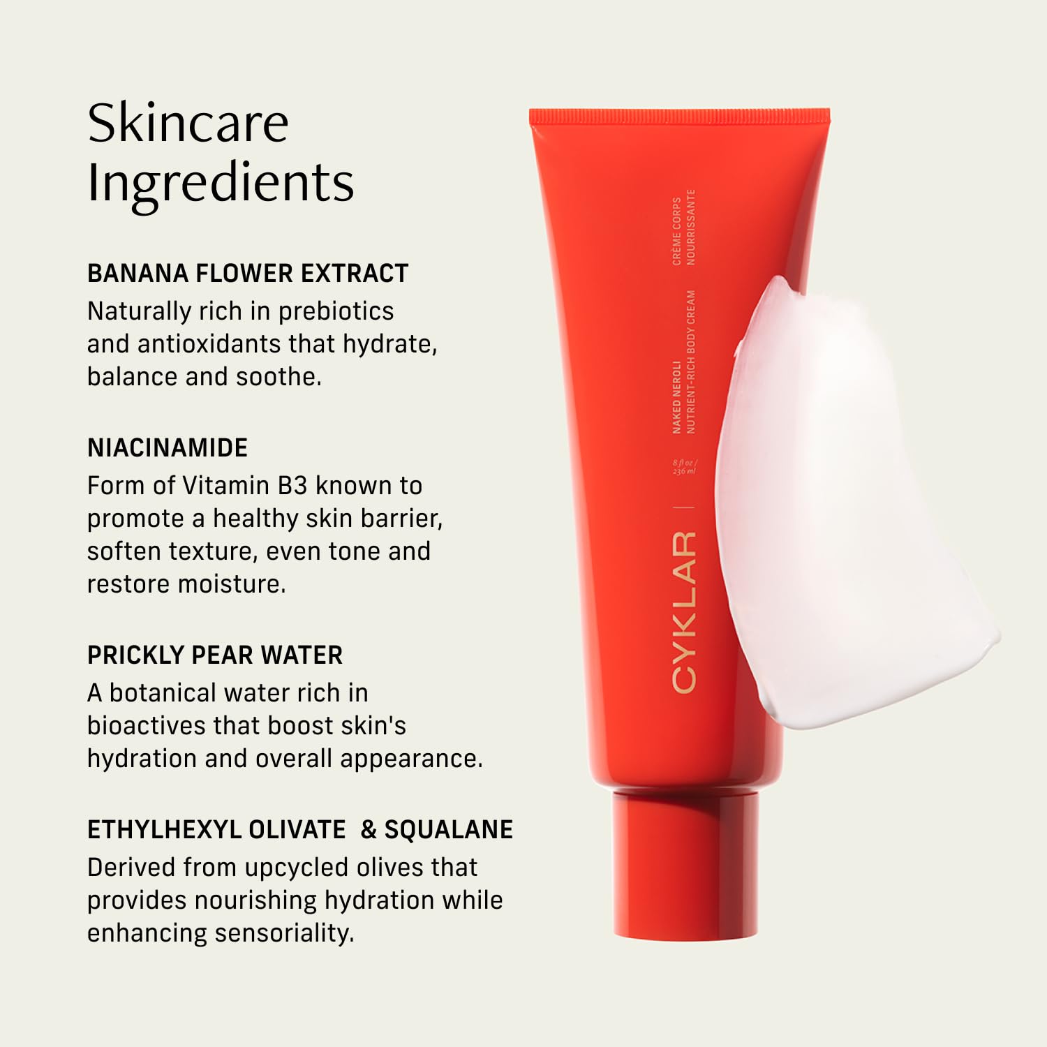 Nutrient Rich Body Cream. Naked Neroli Nourishing Moisturizer with Niacinamide and Banana Flower Extract. Deep Hydration, Thick Body Lotion, Dry Skin Cream for Women and Men, 8 Fl Oz