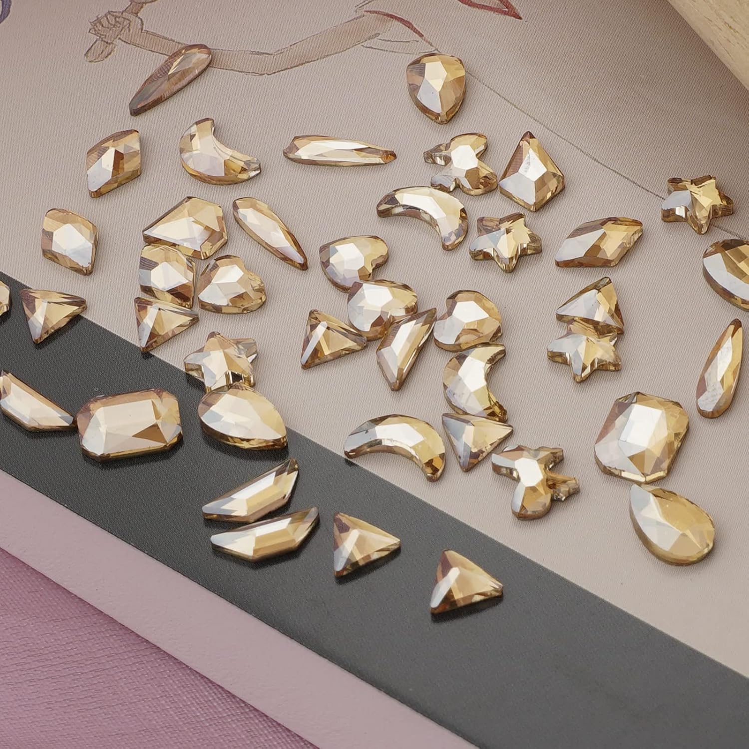 - Create Your Wonderful DIY Design - 18 different stylish shape nail jewels and 2720 champagne rhinestones. Each size or shape nail art rhinestones have separate compartment, which is very useful for your classification and prevents mixing. Just enjoy your rhinestones for crafting.