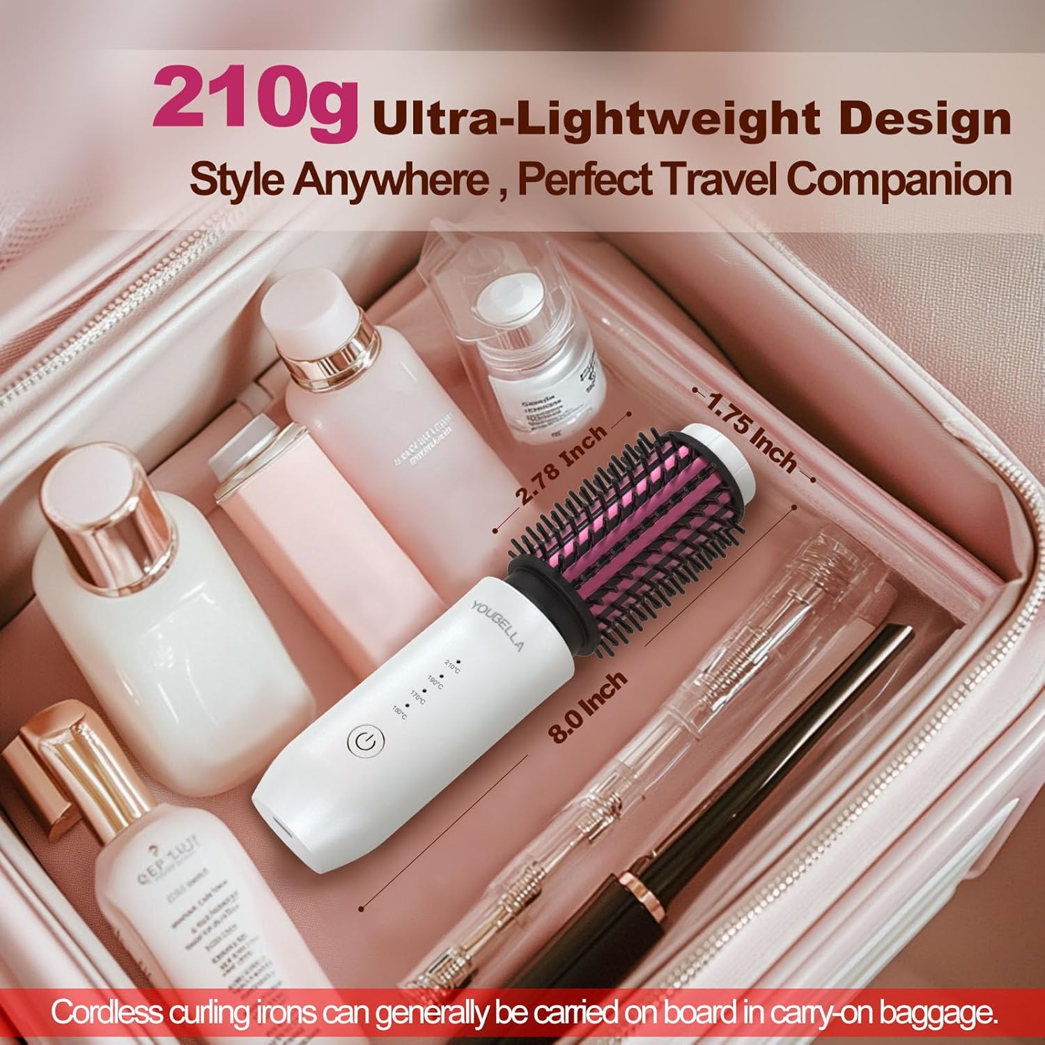 - 【Mini & Cordless】This portable cordless curling iron brush is compact and lightweight, making it the perfect cordless curling brush for travel. Style your hair easily, whether at home or on the go, with this dual-purpose cordless hair curler.