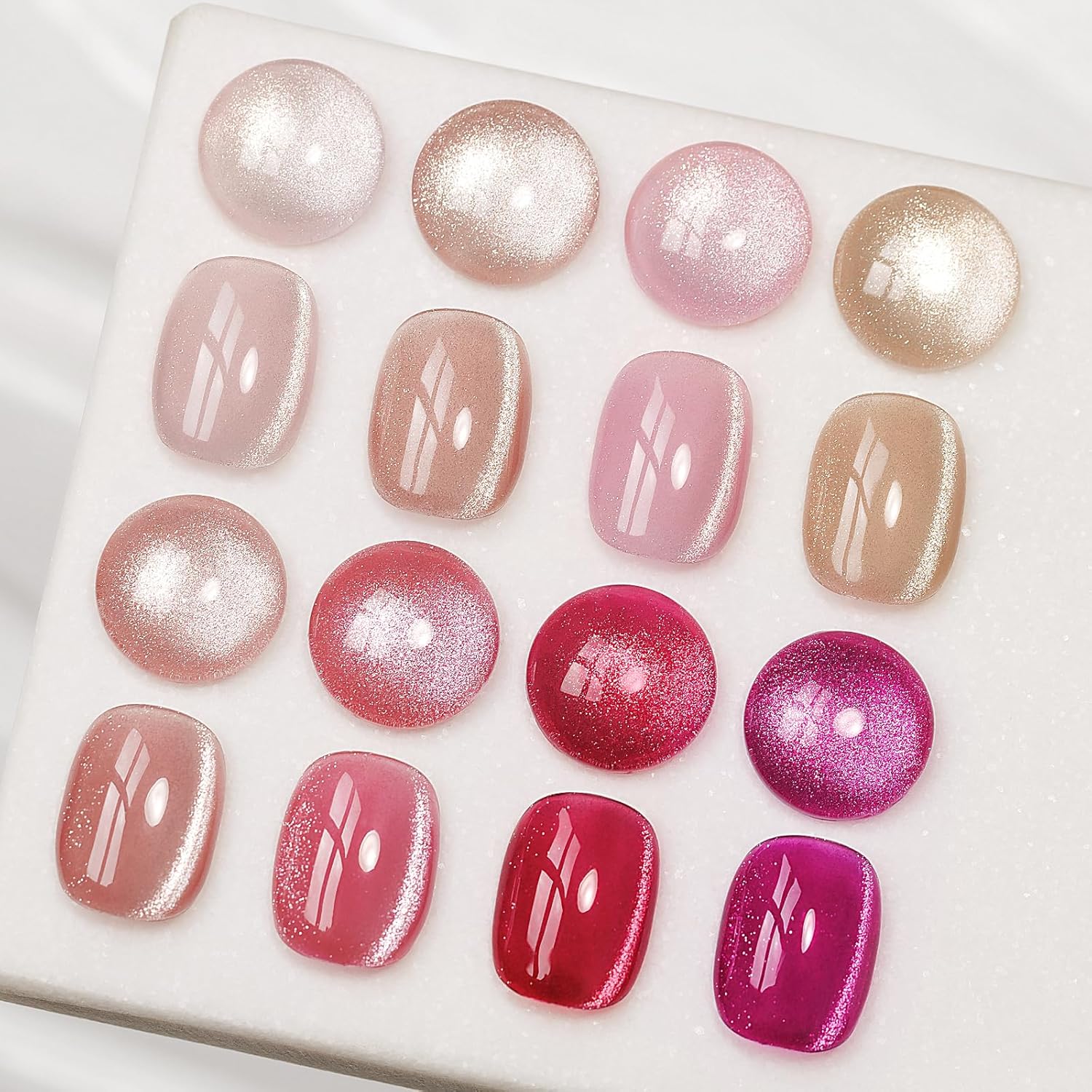 • Stardust Cat Eye Effect & Ideal Gift Choice: Crystal pink colors with cat eye effect, brings you a brilliant glossy finish, to feel the starlight swaying under different angles. Wherein, the pink series is a symbol of elegance. The package is ready to gift, which is appropriate for families or friends on festivals such as birthdays, Mother's Day, Valentine’s Day, Christmas, etc.