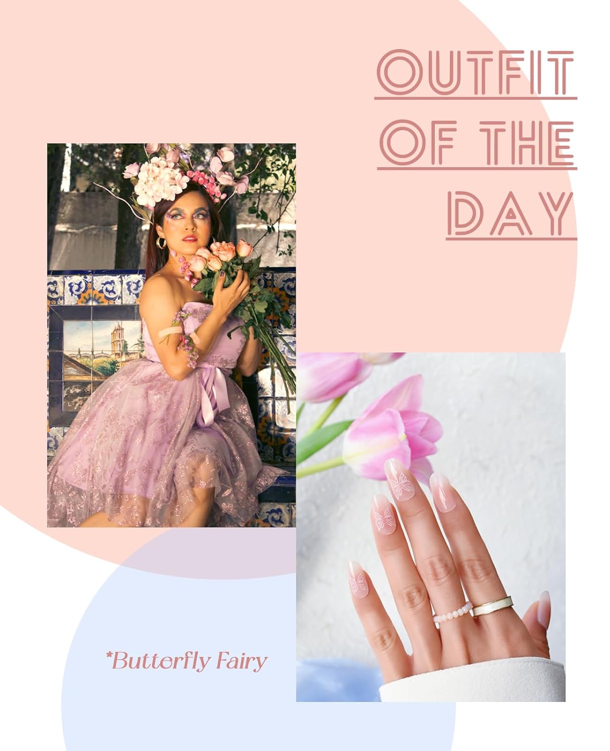 Semi Cured Gel Nail Strips, 20 pcs Nail Wraps, Glaze Stickers, Salon Quality French Manicure, Full Decal Gel Polish Strips, Long Lasting SCG, Easy on, UV Required (Butterfly Fairy)