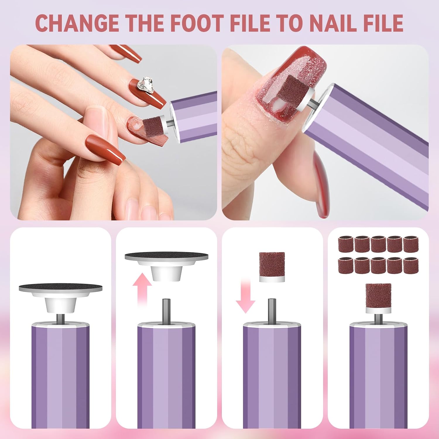 - 【WHY CHOOSE OUR LATEST FOOT SCRUBBER】More Convenient- this is 2-in-1 nail and foot scrubber, for both foot & hand care. More Gentle - compared to traditional foot grinding tools, it prevents over-grinding or bleeding, ensuring a safer experience! More Hygienic - one sandpaper for per person offering a more hygienic solution! More Efficient - Designed with the latest ergonomic features, this foot file offers adjustable speed settings and clockwise/counterclockwise rotation, making it faster
