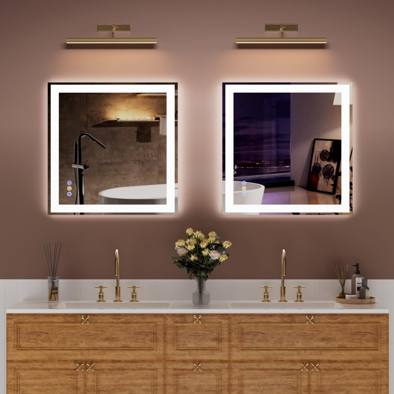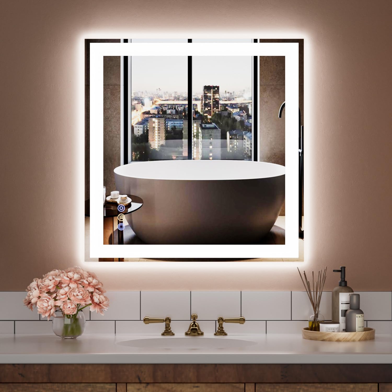 36"x 36" LED Bathroom Mirror, 3 Colors Vanity Mirror with Lights, Front and Backlit Bathroom Mirror with Lights, LED Smart Mirror for Wall, Tempered Glass, Anti-Fog, Stepless Dimmable, Memory(UL ETL)