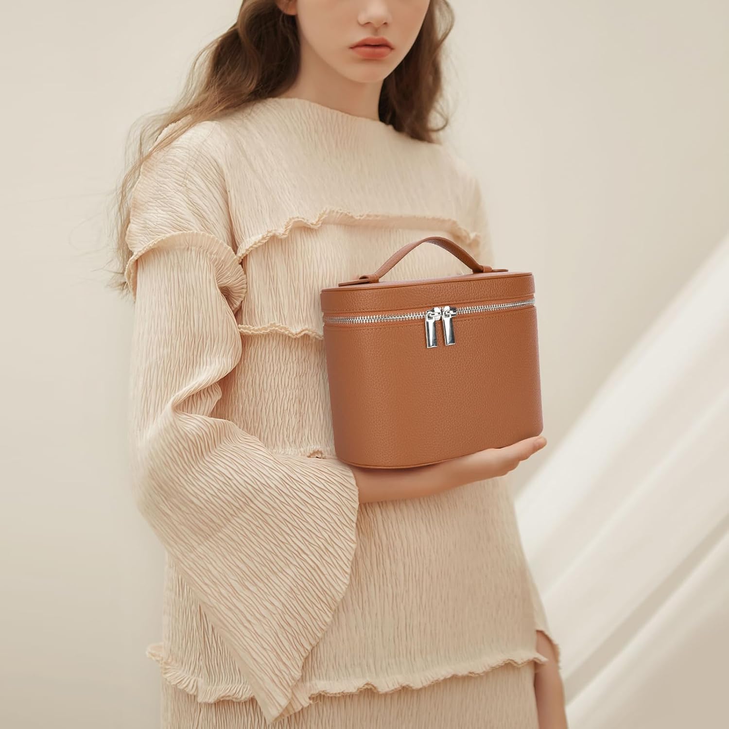 - Makeup Travel Case: The makeup organizer bag is made of PU leather, which is good in texture and durable to use, the leather surface is easy to clean.