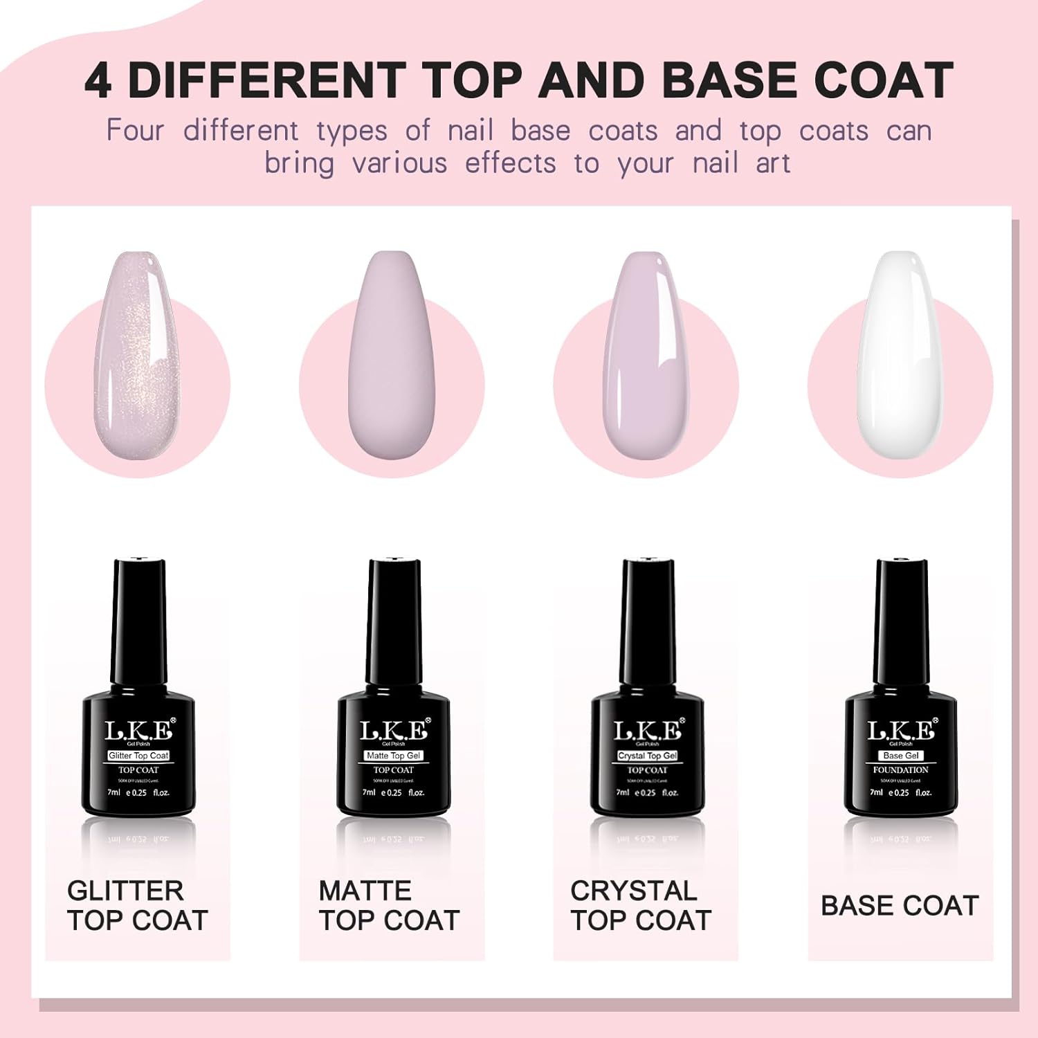 - 【Health & Superior Quality】Made with natural resin and a professional formula, this gel polish is non-toxic and gentle on nails.This gel polish set provides brilliant color payoff and a high-shine finish. The glitter, matte, and crystal top coats add variety and extra protection to keep your nails looking gorgeous.