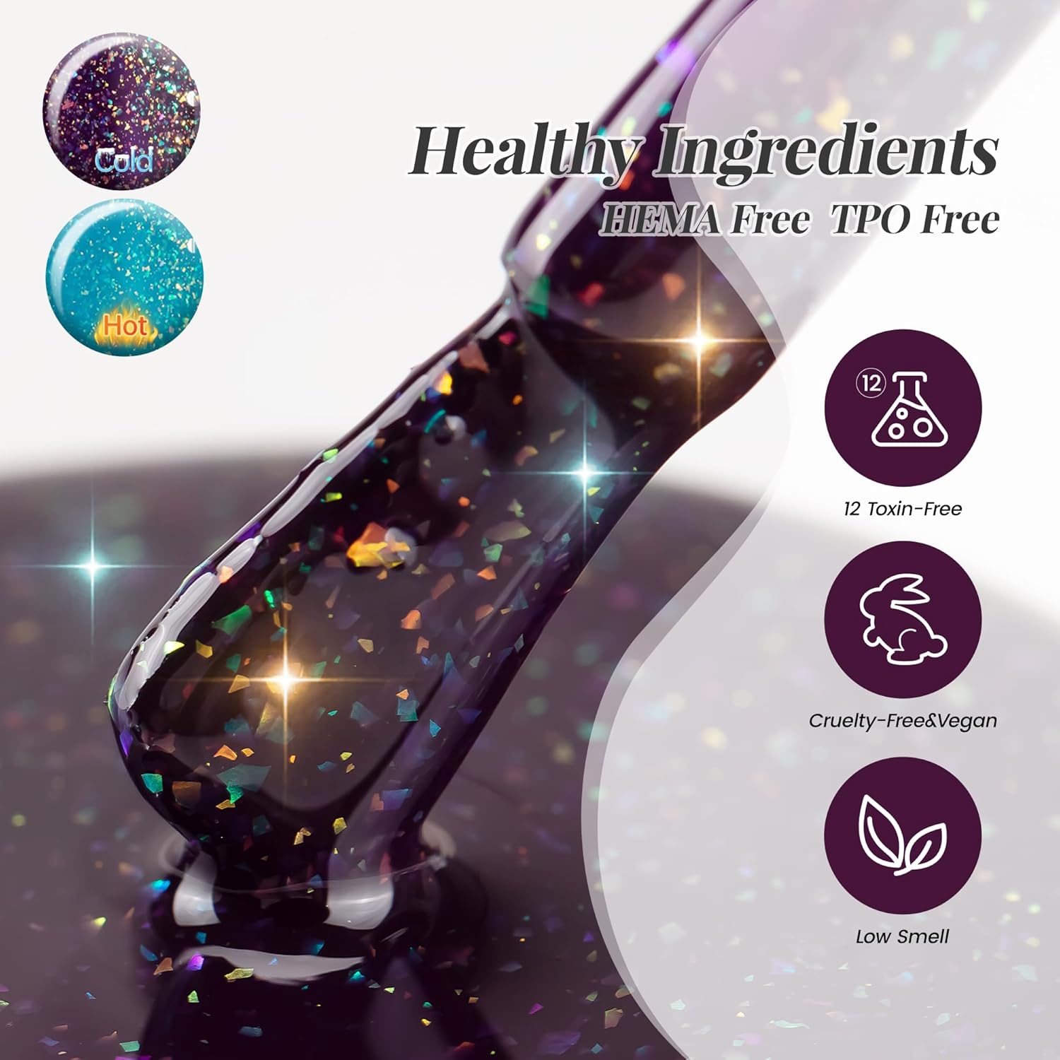 - HEMA-free and TPO-free:The gel is free of HEMA and TPO in an effort to provide users with healthier, safer and more secure gel polish products.When used in the correct process, it will last until at least 28 days or more12 non-toxic ingredients, safe and low odor