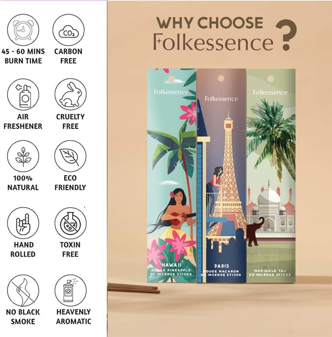 - FRAGRANCE NOTES – A refreshing blend of fragrances complemented by signature notes like Coconut Insense Sticks, Coffee incense, Rose inscents. Ideal for spiritual practices, they infuse any space with an uplifting, comforting aroma.