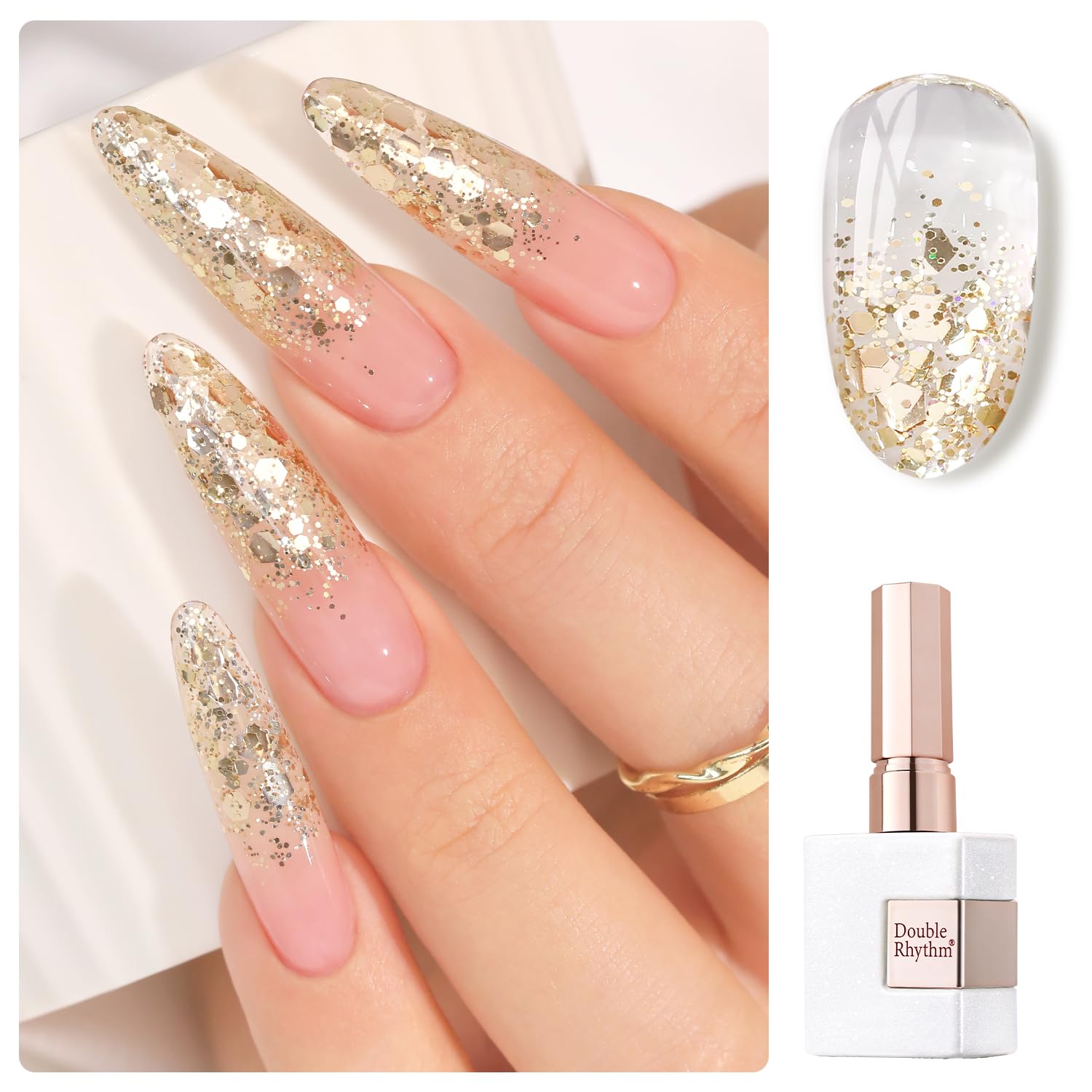 Double Rhythm 0.5Oz Glitter Gel Polish Shimmer Reflective Color for Nail Art Salon DIY Soak Off 15ml Nail Lamp Gel Polish at Home (Golden-B1166)