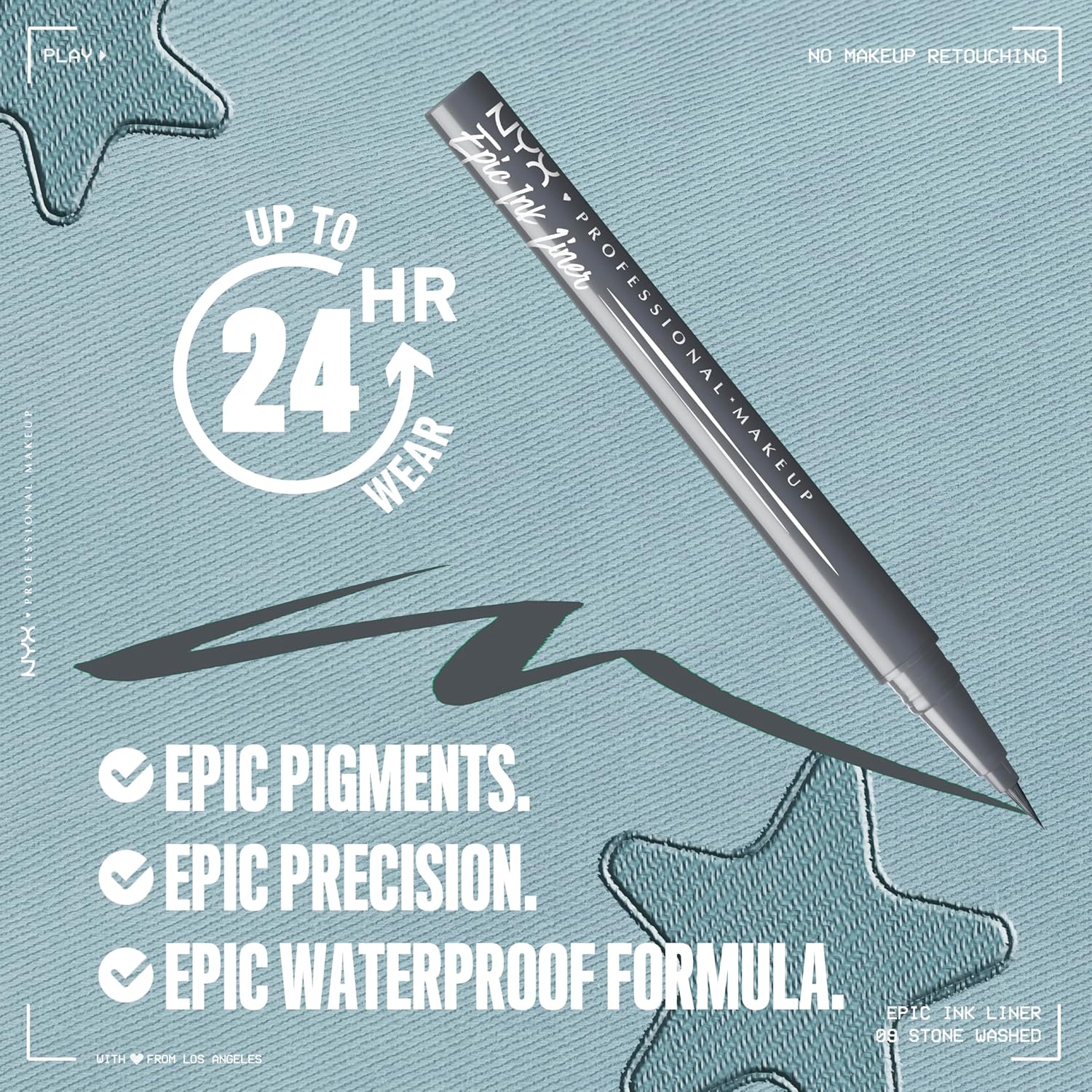 NYX PROFESSIONAL MAKEUP Epic Ink Liner, Waterproof Matte Liquid Eyeliner with Vegan Formula - Stone Washed (Grey)