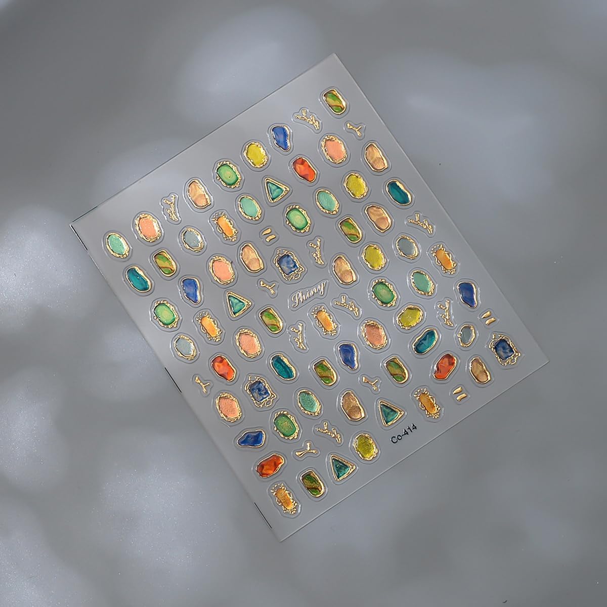 - Shiny Gems Design: Elevate your nail game with our gold nail stickers featuring colorful gems.The gold-trimmed borders add a touch a of elegance,perfect for creating luxury nail art