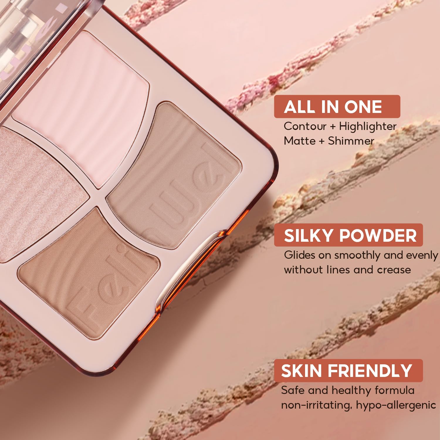 - All-in-One Palette: FelinWel contouring kit features bronzer and highlighter, along with a soft nose shadow brush, creating an alluring shine and a beautifully sculpted look. Optimal for face and nose sculpt and glow.Perfect for beginners and pros