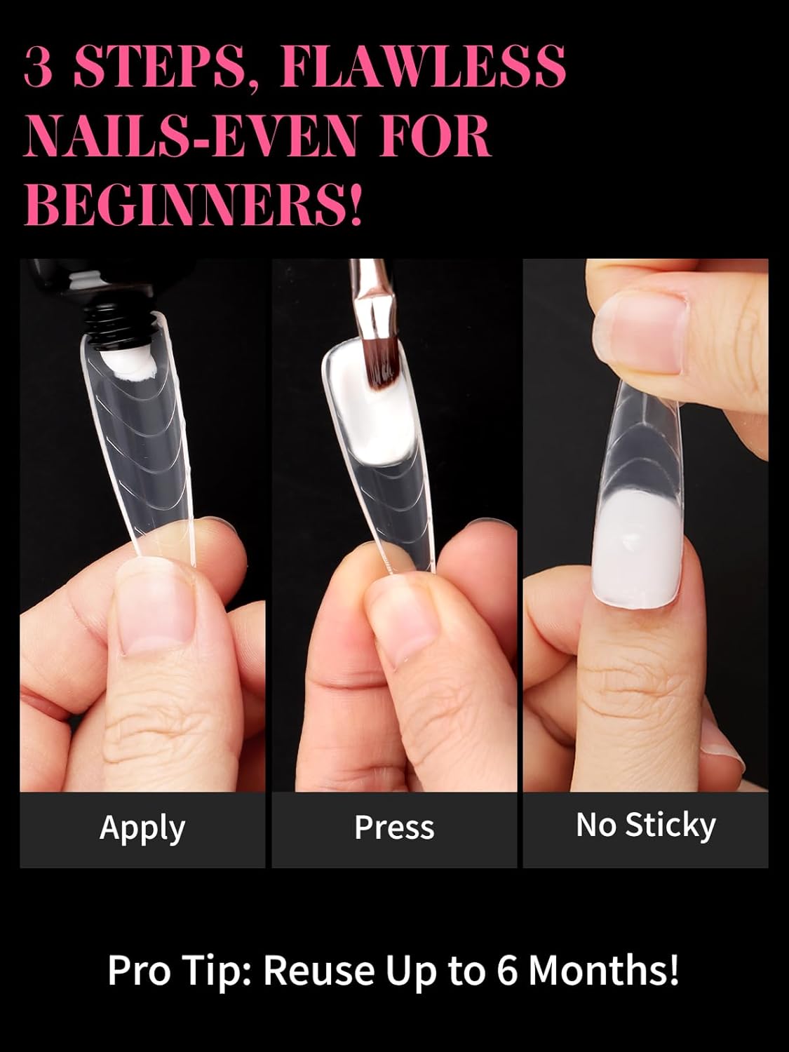 - 【Easy to Use】They are artificial nails forms, used as the nail mold. No glue needed, just brush the acrylic/structure gel into the forms and then place on the nail plate, hold on for a few seconds and cure it. Easy to shape, and pull away easily from the dried acrylic nails, leaving a very shiny nail.