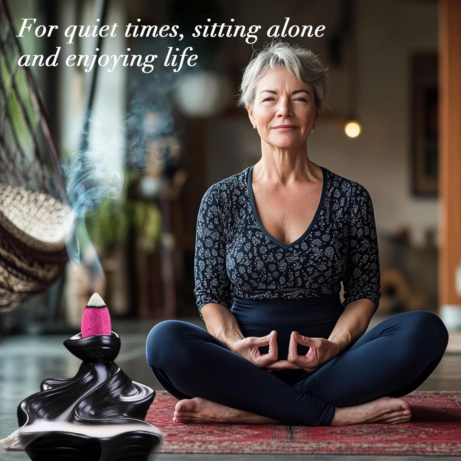 - Exclusive Appearance: The backflow incense cones burn to form a graceful column of smoke that flows slowly down from the top of the waterfall incense burner, as if a waterfall were dropping from the sky. The column of smoke gradually disperses downward, forming a light layer of smokeThe smoke wafts through the air, creating a mysterious and romantic atmosphere. It is best to equip a special backflow incense holder when using in order to achieve the beautiful effect of a waterfall flowing down