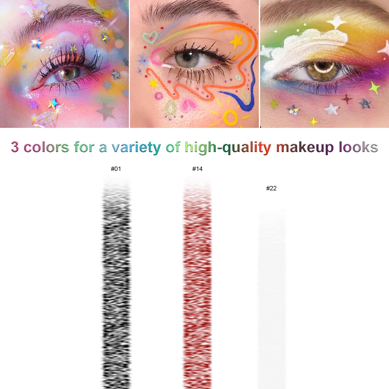 • 【Usage& Occasions】3 different Colorful Eye Liner, ideal for Party, Cosmetic Show, Live Show, Prom Night, Dance Party, and Wedding Makeup. With unique package, would be the perfect gift to your friends, bestie, families.