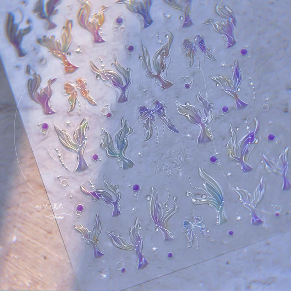 - Mermaid Nail Decals: 1 sheets of 5D Embossed mermaid nail stickers give people an intuitive and advanced exquisite feeling. spring summer design nail decals are perfect for decorations for your false nails.that will make your fake nails more realistic and interesting!