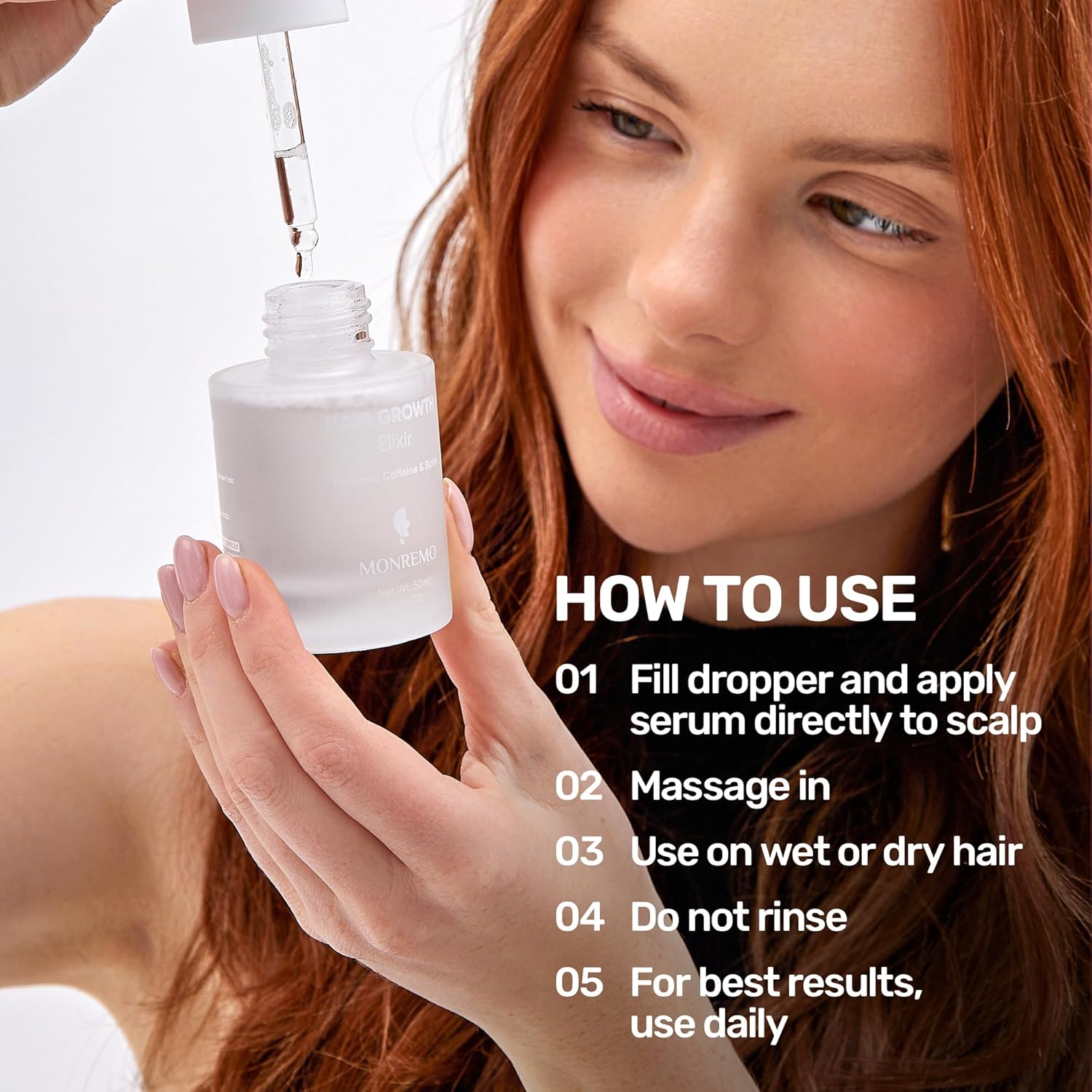 - Nourishing Hair Growth & Scalp Treatment: MONREMO Hair Growth Elixir is enriched with turmeric, caffeine, and biotin, promoting natural hair growth, nourishing the scalp, and reducing signs of thinning. Ideal for women and men seeking thicker, fuller hair.